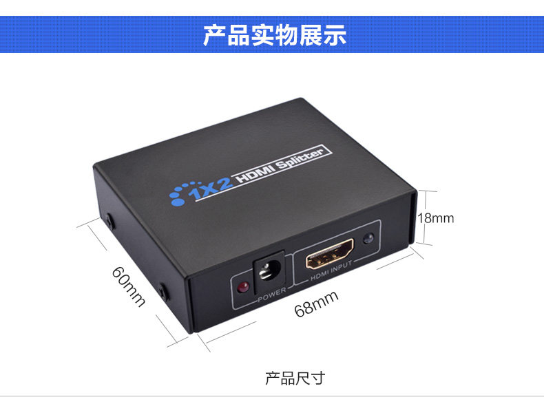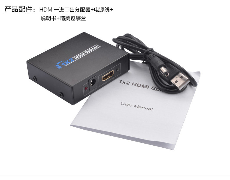 达而稳 hdmi分配器1分2电脑视频高清显示器分频器一进二出切换器