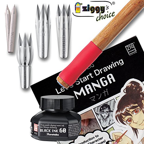 - Title : Ziggy's Choice Manga Pen and Ink Beginner Cartoonist Set with Ink, Nibs and Nib Holder