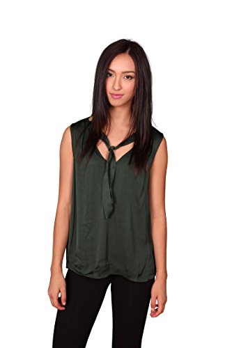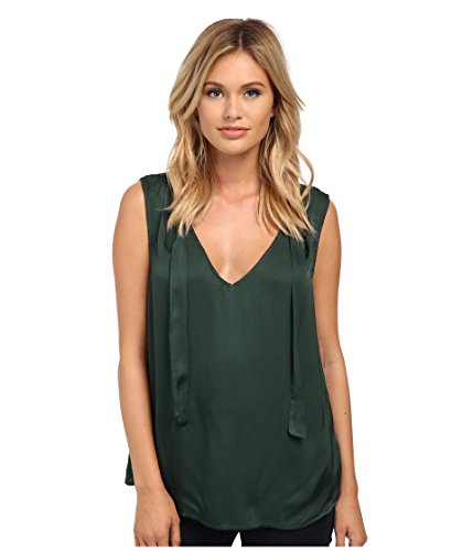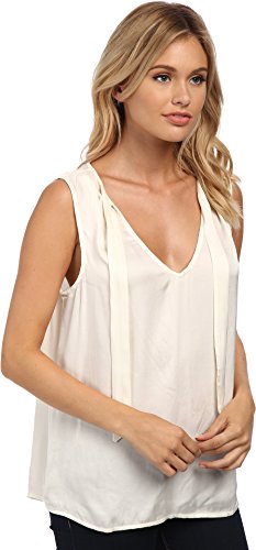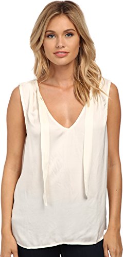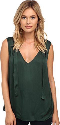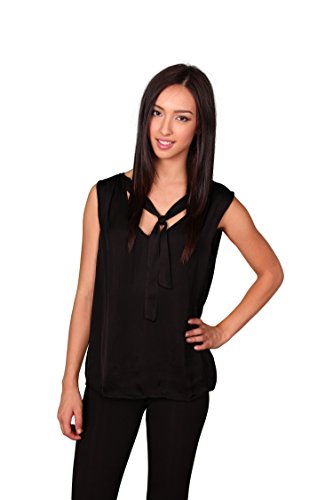 Relaxed fit boasts a draped sihouette. Flaunts a soft satin fabrication with attached tie detail at shoulders. Open v-neckline. Sleeveless. Straight hemline. 54% viscose, 46% cotton. Machine wash cold, tumble dry low. Made in the U.S.A. and Imported.