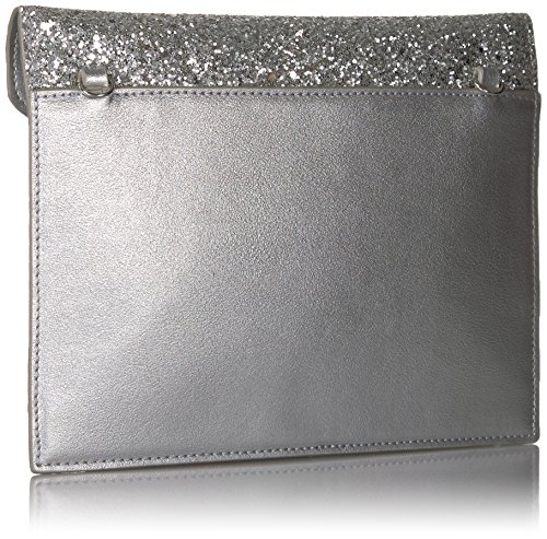 The Fix Izzi Glitter Envelope Clutch with Chain Crossbody Strap, Silver