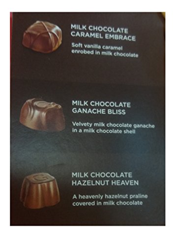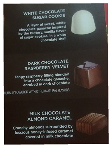 -. Feature : This indulgent Godiva assortment features: Dark Chocolate Coconut, White Chocolate Sugar Cookie, Dark Chocolate Eclipse, Milk Chocolate Hazelnut Heaven, Milk Chocolate Caramel Embrace, Milk Chocolate Creme Puff, Dark Chocolate Raspberry Velvet, Milk Chocolate Ganache Bliss, Milk Chocolate Almond Caramel / 9.5 oz (270g)