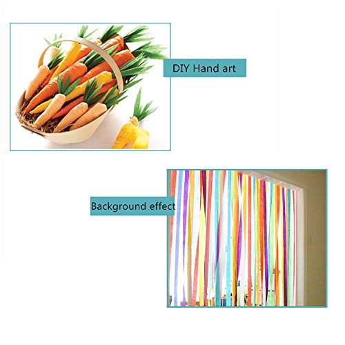 -. Feature : Crepe paper size: width - 1.77 inches, length - 82 feet. 8 Assorted Color. / Package contains 8 rolls party streamer in assorted color: White, Blue, Green, Yellow, Red, Rose Red, Purple, Orange. Colorful streamers very great for your special party decorations. NOTE: Due to the different production batches, there may be a little chromatic aberration. / Every crepe streamer rolls neatly bundled, easy to unravel and hang up. Bright and well saturated colors, coordinate with other party supplies and party decorations, such as assorted color party balloons, happy birthday decorations banner and tissue pom pom decorations ball to personalize your party style. / The crepe paper streamer is perfect for various theme party decoration, such as Happy Birthday party decorations, Wedding decorations, Summer party decorations, Baby showers decoration and other theme party decorations. / Hang the streamer paper decorations from ceilings to create a tent effect, twist streamers together into spirals of color, or drape around furniture to personalize your party style.