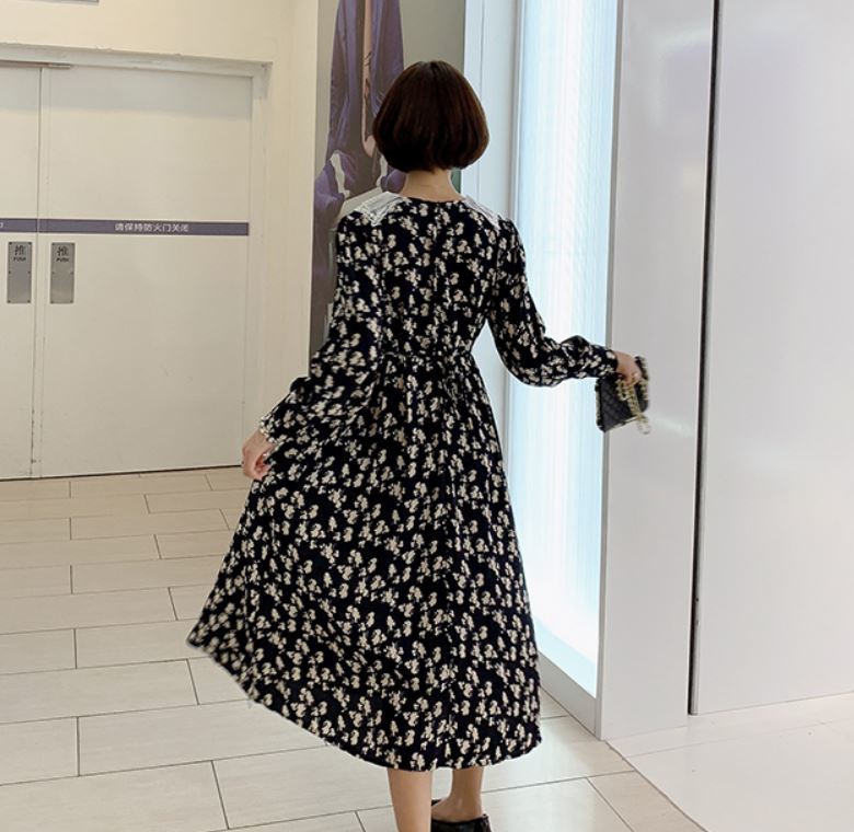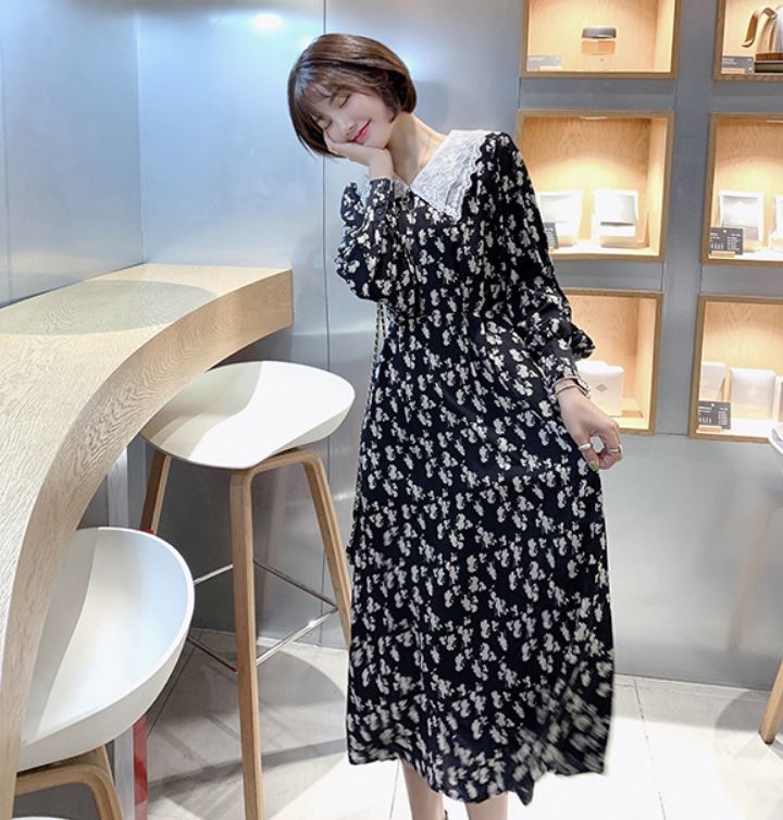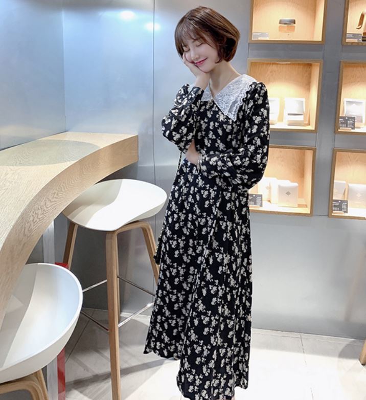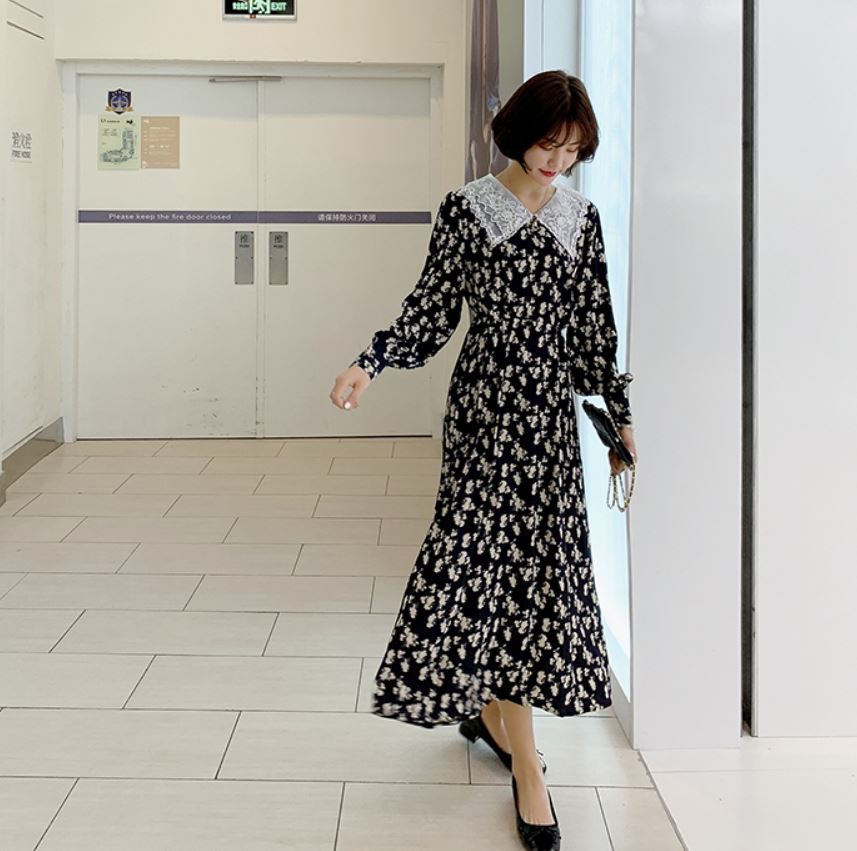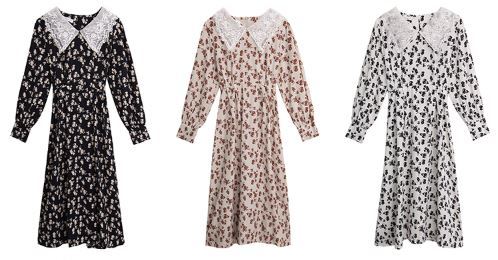 レース素材の襟がフェミニンな花柄ワンピース♪