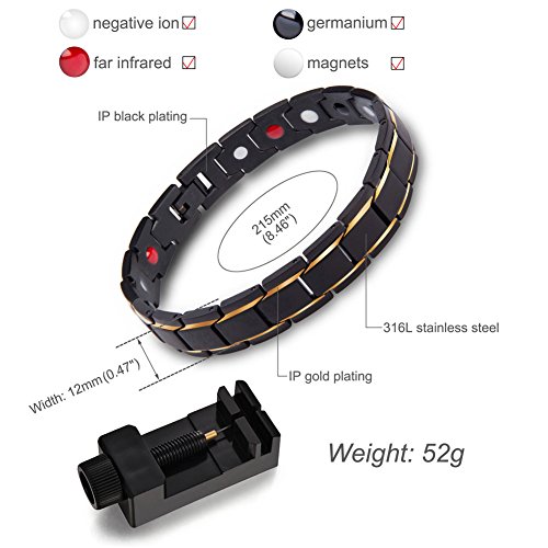 -. Title : Murtoo Titanium Magnetic Therapy Bracelet 18K Gold Black For Men Women with Free Link Removal Tool