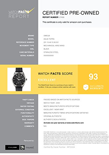 -. Feature : Omega Aqua Terra 231.13.49.10.06.001 with black dial / Authenticated by WatchFacts. Grade Rating: 93 / Condition: Excellent / Comes with original box and manufacturer's papers offered with this watch / Mechanical-hand-wind movement / Watch year: 2000