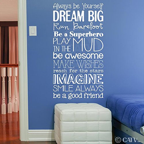 Boy version Kid Rules subway art vinyl lettering wall saying decal quote sticker nursery child room (White, 16x31)