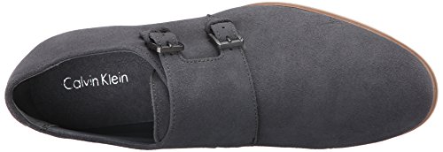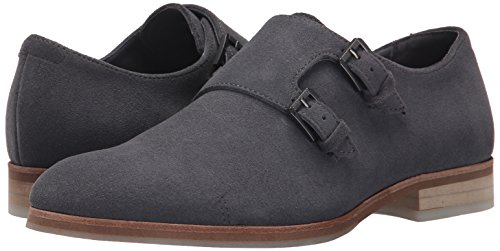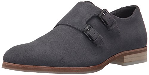 Suede shoe featuring seamless toe and double monk strap with buckle closures