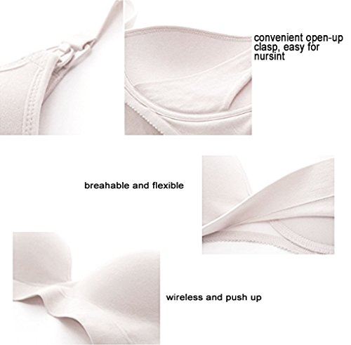 Binding : Apparel Product Description Product Description This seamless nursing bra is a must-have comfort for all mommies. Designed specifically for maternity needs, its body hugging fabric gently stretches to accommodate your changing shapes. This bra is soft, fully adjustable and wire-free for added comfort. Nonetheless, it offers gentle support and features removable foam inserts for lovely shape and nipple or breast pads discretion. Deep Soft-V-neck designed to provide balance and a flattering appearance. Back closure makes it even more comfortable and easy to wear and adjust your size. Full drop away bra cup is important for skin-to-skin contact and the easiest possible breastfeeding access for mom and baby. A good choice for a night sleeping or lounging when comfort is key. Nursing your baby is easy, convenient and comfortable in this lightly padded, wire-free nursing bra from Mommies's Best! Product Specifications: *easy one-hand release for nursing *back closure for added comfort *unique gentle support *wireless comfort and support *full drop away bra cup for skin-to-skin contact *adjustable straps *removable foam cups for lining when you want it (to hide nipples or breast pads) *full coverage with center shirring deep Soft-V-neck *soft stretchy fabric: polyamide/spandex *hand wash, line dry 0 |