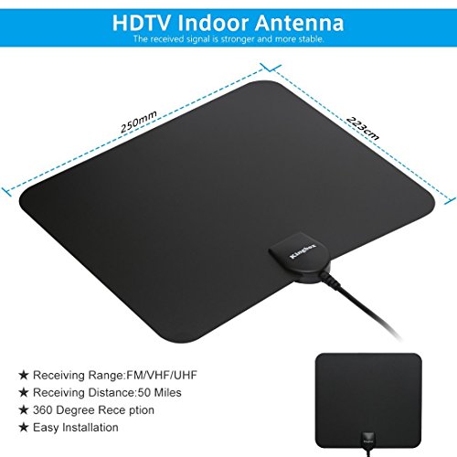 Studio : kingbox Publisher : kingbox Binding : Electronics Product Description Kingbox TV Antenna, Indoor Amplified HDTV Antenna 50 Mile Range with Detachable Amplifier Signal Booster, USB PowerSupply and 10FT High Performance Coax Cable - Upgraded Version Better Reception