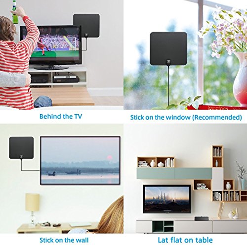 Specifications: WorkingFrequency:VHF47~230MHz,UHF 470~862MHz V.S.W.R.: ≤2 Max Gain:25dBi(with amplifier without adapter ) Impedance:75Ohm Material of Coaxial Cable:Cu 1.5C-2V L=3M Connector Type:F Male / IEC Male Reception Range: 60miles Size:25*22.3*0.05cm TIPS About How To Use Your TV Antenna a. At first, check to make sure you have correctly connected the antenna to your HDTV or third-party HD receiver b. Second, re-scan for the channels. In the TV's set up menu, set the mode to antenna or air. Refer to the Antenna TV manual for detailed instructions c. Reposition the antenna in a different location, facing the direction of the broadcast towers is usually the best. Channels reception depends on what's being broadcast towers in your area, how far away you are from towers, and your surroundings. You'd better try to put your tv indoor antenna on the higher location, like on the wall, better close to or on the window, and no obstacles between your home to Broadcast Towers. And turn around the antenna leaf to find the best reception direction, sometimes a few feet can make a big difference. Easy installation: Step 1: Place the HDTV antenna in an area with good reception. Step 2: Connect the antenna directly to HDTVs with HD tuners or through a set-top box for TVs without HD tuners. Step 3: Scan for channels and access all your favorite local and national programs completely for free. 0