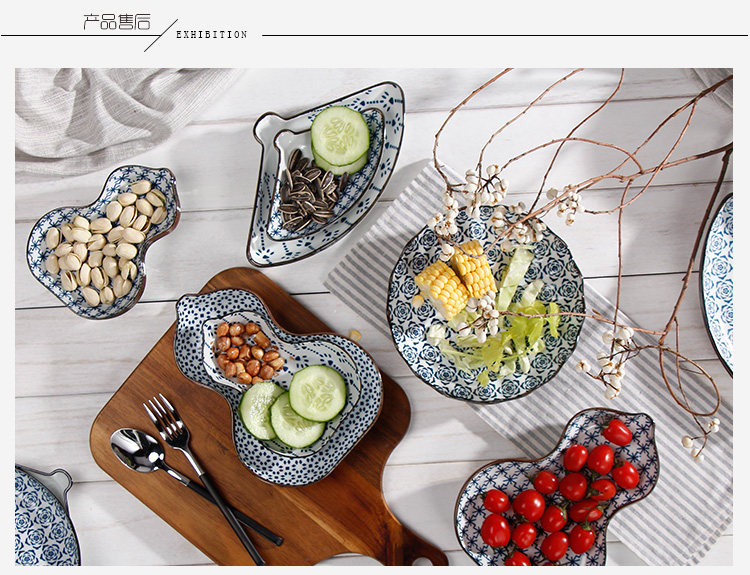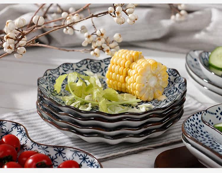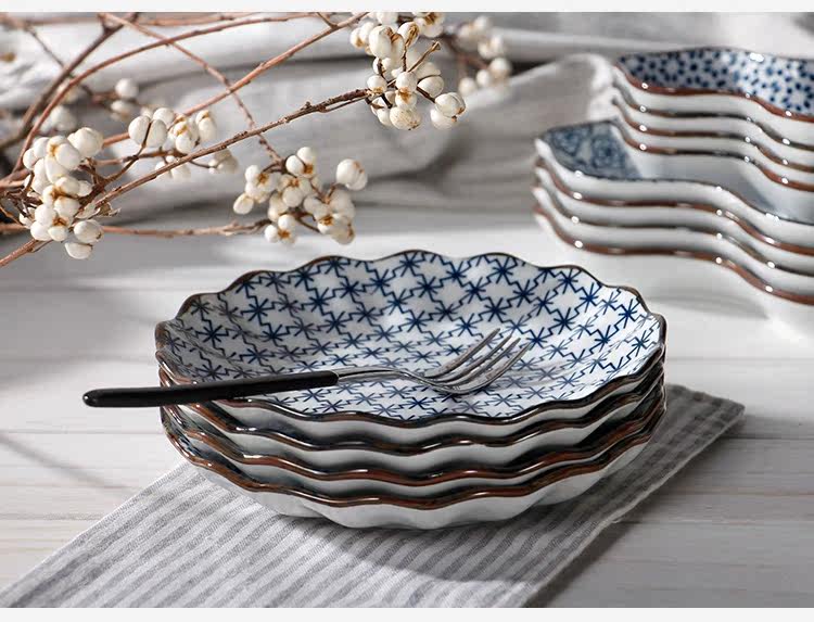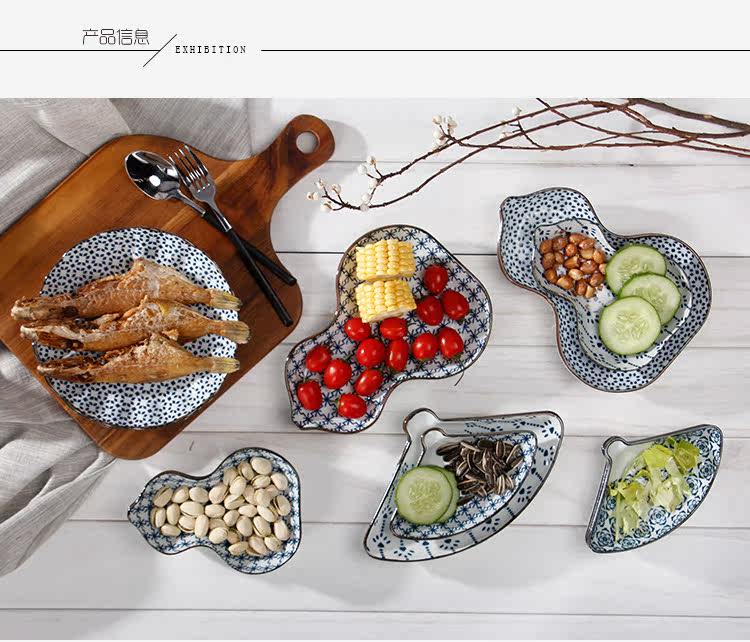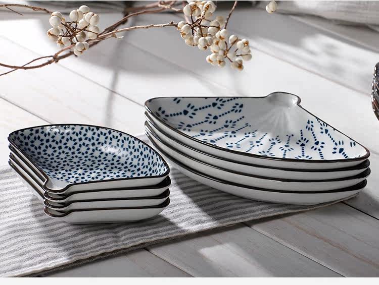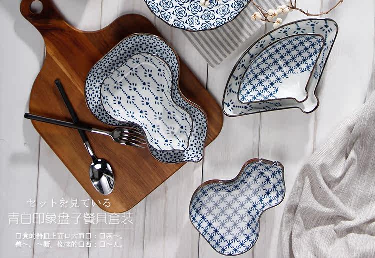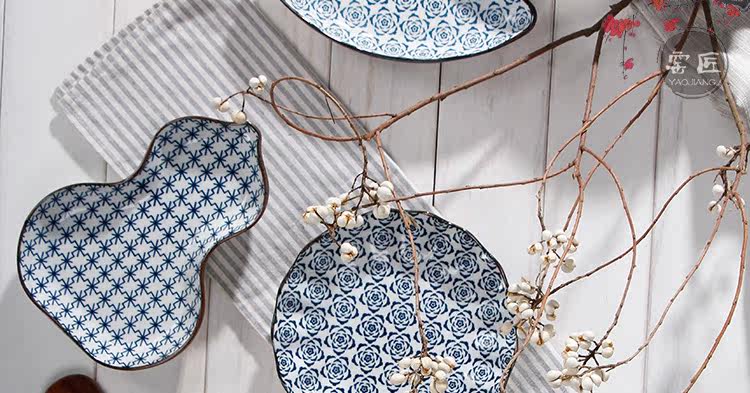 青白印象系列日式陶瓷盘子创意不规则餐具高温釉下彩菜盘餐盘?