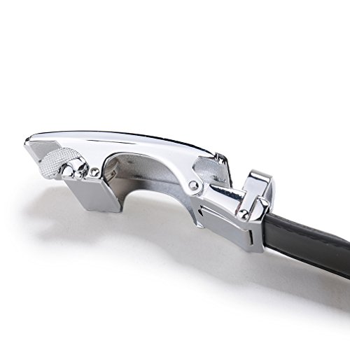 This ratchet belt is good quality and we pay attention to every key point of the belt and buckle from design to quality and manual. It is worth much more than the money you pay for it indeed. It is simple and classic, so you can wear it for years. We have checked the belt for many times. The ratchet for the belt is good and the buckle clasp work well. It will lock the belt well when you want to lock and it will release smoothly when you want to take off pants. The belt is size-plus, so it fits big and tall men. You do not need to know the waist size of the person when you want to send him the gift, just send him, it will fit because it is long enough and easy to trim to the desired size. You will be impressive for its integrated design and quality. Our service is first class, please let us know the problem and we will give you best solutions. 0