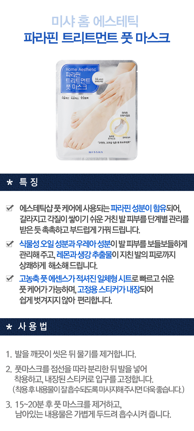 荒れて乾燥しやすい足の肌を段階別にケアしてくれるマスクシート!植物性オイル成分とウレア成分が足の肌をすべすべに整えてくれます!【商品構成】ホームエステティックパラフィントリートメントフットマスク1枚