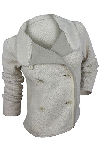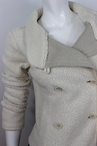 This fashionable ivory jacket from James Perse is crafted in a soft and warm wool blend, designed with trim fit silhouette and features a double breasted four button closure front with loop and button fastening funnel collar, grey knitted contras facing, in-seam side pockets and in-set long sleeveFeature