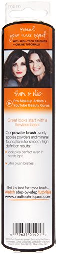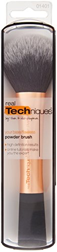 Designed with pro makeup artist Samantha Chapman, Real Techniques brushes combine high-tech materials with innovative design to make creating a pixel-perfect look easier than ever: Taklon bristles are ultra plush and smoother than the hair you'll find in other brushes. Since taklon is synthetic, it's 100% cruelty-free. The soft fibers help create a flawless, high-definition finish in any type of light, from sunlight to harsh indoor lighting. The color-coded system corresponds to the key steps of makeup application so you can create a flawless base (copper), enhanced eyes (purple), and the perfect finish like a pro (pink). Each brush head is hand-cut to the perfect shape, allowing for precise application from dense coverage to a soft, delicate finish. The collection is suitable for a wide range of products and every makeup need – from powders, creams, and liquids to mineral makeup, highlighter, and shimmer. Brush names on the handles make for easy reference when creating your favorite look.Feature