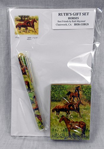 Horse Lover Gift Set by Ruth Maystead includes Horse Note Pad, Pen and Playing Cards (Field)