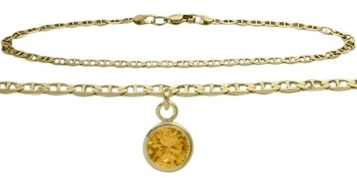 -. Title : 10K Yellow Gold Mariner Anklet with Genuine Citrine Round Charm