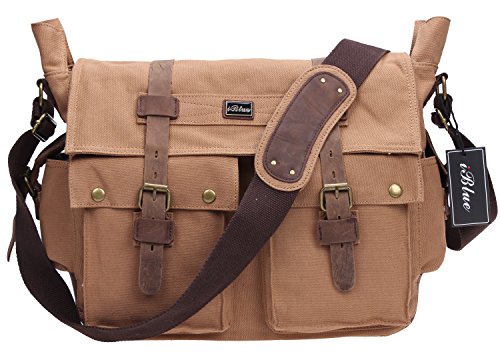 -. Brand : iblue -. Color : Brown -. Department : mens -. Feature : 3 YEAS QUALITY GUARANTEE:if you have ANY problems with this messenger bags simply let us know(open your order id and contact us) and we will refund every penny of your purchase or ship you another brand new messenger bag / L SUIT FOR 13 INCH LAPTOP XL SUIT FOR 14 LAPTOP: L suit 13.3 inch MacBook Pro well but it is a little small for a 14 inch laptop ,XL suit 14 inch laptop well and it's available for 15 inch laptop / THIS SHOULDER BAG IS DURABLE:it is made of thick canvas and genuine leather, you can carry a laptop computer , several books, a water bottle, etc in the bag,zippered pocket inside where you can store pens, money, keys, etc. / THIS SCHOOL BOOKBAGS HAS FOUR EXTERIOR POCKETS:Internal and external organizer pockets make this bag ideal for work, commuting or college.Can be worn on your front or back or as a crossbody bag. / CLASSIC DESIGN OF THIS MILITARY SATCHEL BAG: it is popular among adults,teens,men,women,boys and girls whether you walk, bike, drive, bus or train. Related topics: Haversack, courier, messengers, men's, women's, travel, bookbag, cloth, duffle, office, teens, case, business, sachel, mailbag, student, utility. -. Model : #2138 -. PackageQuantity : 1 -. ProductGroup : Apparel -. ProductTypeName : LAGE -. Title : Iblue Vintage Canvas Cross Body Laptop Messenger Bag College Bookbags for Men Womens Leather#2138
