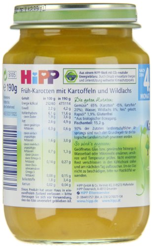Hipp Früh-Karotten mit Kartoffeln und Wildlachs, 6er Pack (6 x 190 g)