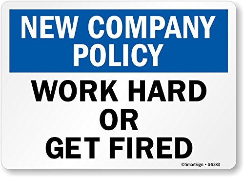 SmartSign "New Company Policy - Work Hard or Get Fired", Vinyl Label, 10" x 14"