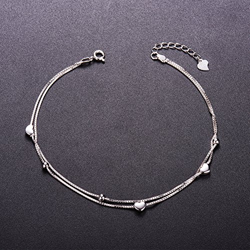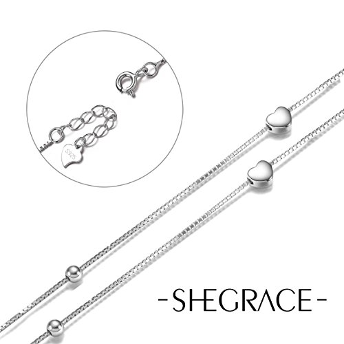 -. Title : SHEGRACE layered Heart Anklets for Women, Sterling Silver Anklet Bracelet