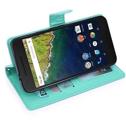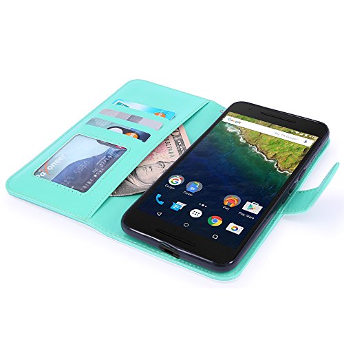 Nexus 6P Case, LK [Kickstand Feature] Nexus 6P Wallet Case, Luxury PU Leather Case Flip Cover Built-in Card Slots & Stand For Nexus 6P (Mint)