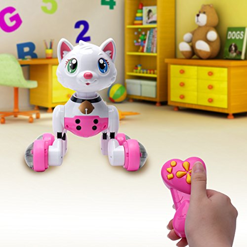 Cute robot cat is friendly, sporty, outgoing/indoor can follow you for a walk and playing,suitable for 3 age up kids,boys/girls, students,teenagers and even adults!