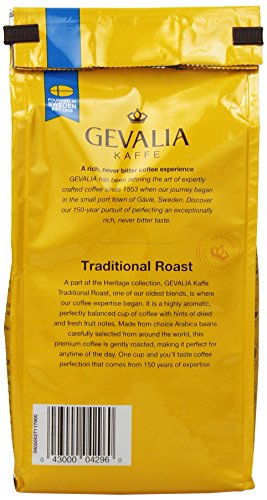 A part of the Heritage collection, GEVALIA Kaffe Traditional Roast, one of our oldest blends, is where our coffee expertise began. It is a highly aromatic, perfectly balanced cup of coffee with hints of dried and fresh fruit notes. Made from choice Arabica beans carefully selected from around the world, this premium coffee is gently roasted, making it perfect for anytime of the day. One cup and you’ll taste coffee perfection that comes from 150 years of expertise.Feature