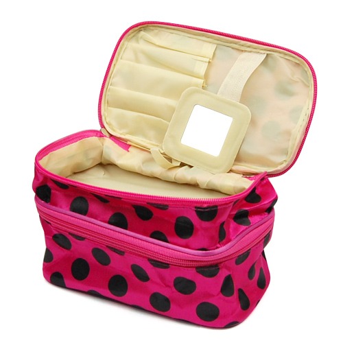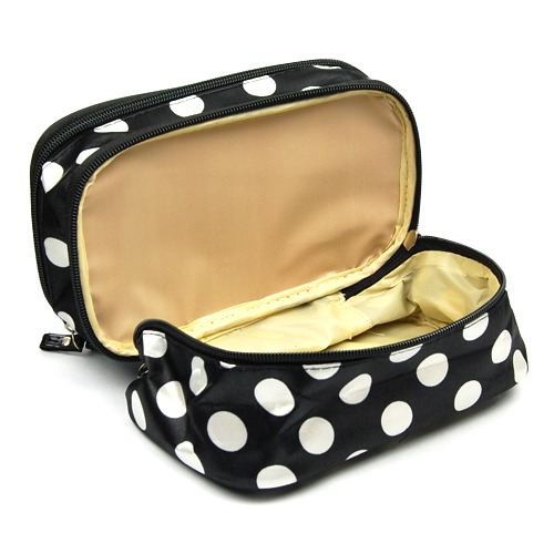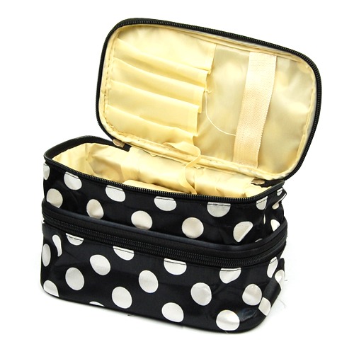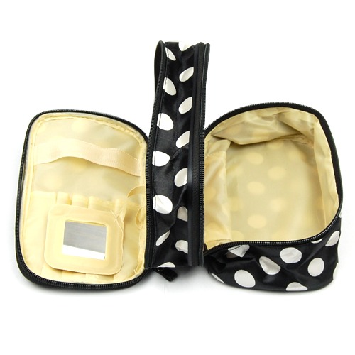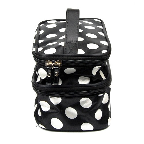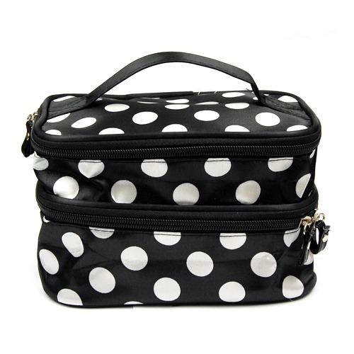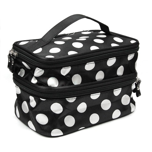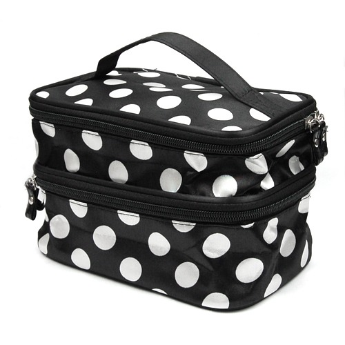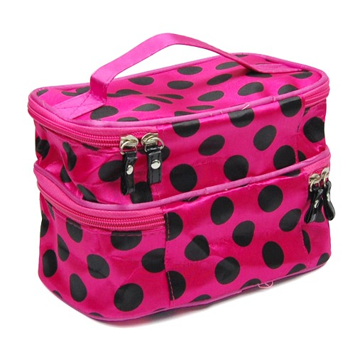 Travel Portable 2-Layers Dot Zipper Container Case Cosmetic Makeup Toiletry Bag