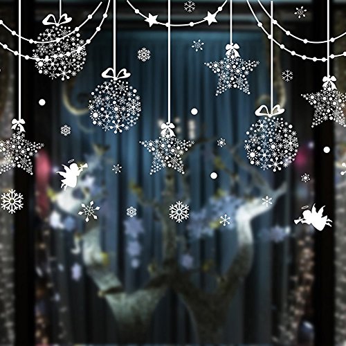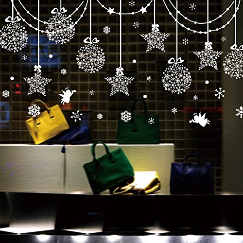 -. Title : SWORNA Holiday Series SN-64 Merry Christmas Ball Star Snowflakes Decoration Removable Vinyl Wall Window Door Mural Decal Sticker Retail Store/Coffee House/Restaurant/Supermarket/Dress Shop 30"H X 63"W