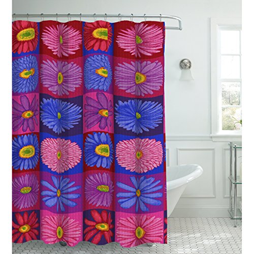 Creative Home Ideas Oxford Weave Textured 13-Piece Shower Curtain with Metal Roller Hooks, Brighten Up Daisy Bright