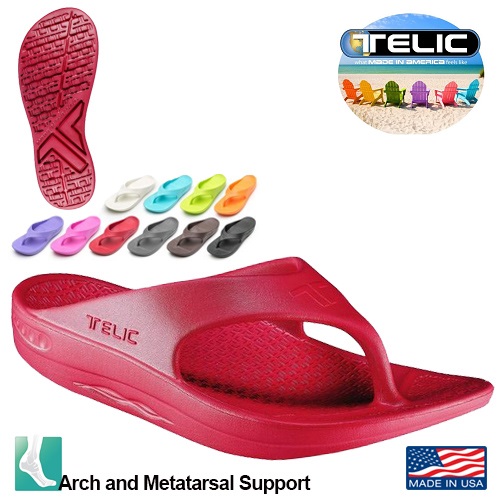 Telic uses a new material called Novalon™; a body-heat activated, waterproof, feather-light material that is durable, elastic, and pillow-soft. Contoured to support the arches of your feet, all styles feature a deep heel cup with