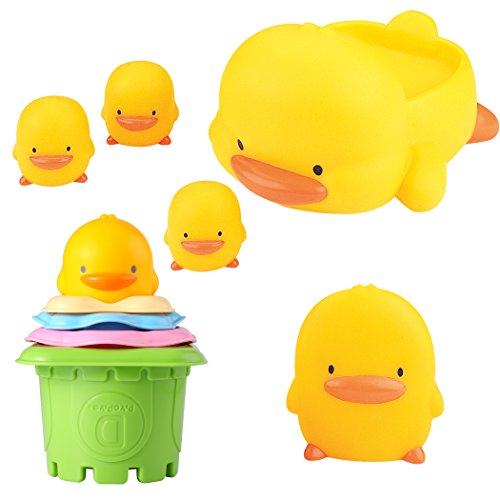 -. Feature : The Piyo Piyo bath toy gift set includes three duckling-themed toys that delight babies and toddlers and make bath time fun / The set includes the Piyo Piyo's cup stacker, the 4-piece baby duckling set and the bath time toy, which is a squeaking rubber ducky / As children play with the nesting, stacking cup stacker toy, they are developing hand-eye coordination and small motor skills / The boxed set is packaged with love in an organza bag and tied with a bow / Piyo Piyo provides high quality products developed with babies, toddlers and parents in mind