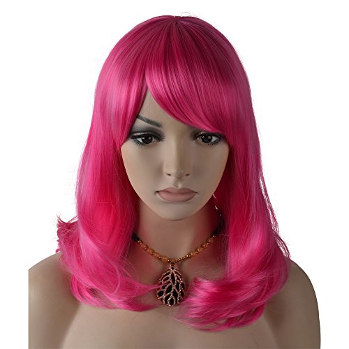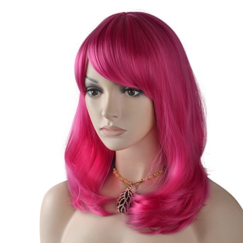 eNilecor Hot Pink Wigs 14" Layered Curly Women Wig with Bangs Synthetic Realistic Natural Colored Hair Wig Shoulder Length Cosplay Custom Daily Party...
