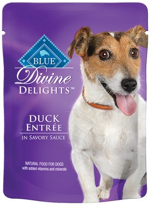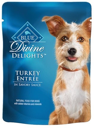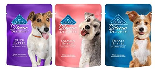 BLUE BUFFALO DIVINE DELIGHTS NATURAL FOOD FOR DOGS 3 FLAVOR VARIETY 6 POUCH BUNDLE: (2) BLUE DIVINE DELIGHTS DUCK ENTREE IN SAVORY SAUCE, (2) BLUE DIVINE DELIGHTS SALMON ENTREE IN SAVORY SAUCE, AND (2) BLUE DIVINE DELIGHTS TURKEY ENTREE IN SAVORY SAUCE, 3 OZ. EA. (6 POUCHES TOTAL)