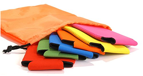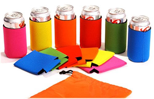 TahoeBay 12 Can Sleeves and Drawstring Bag Set - Multi Color Neoprene Beer Coolies for Cans and Bottles - Insulated Blank Collapsible Drink Coolers
