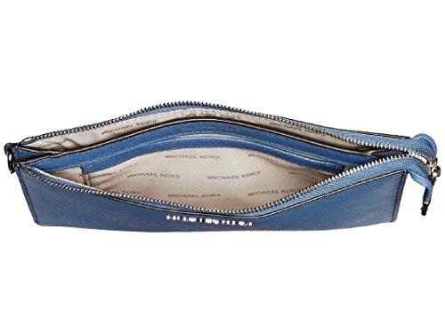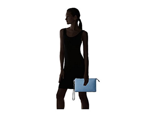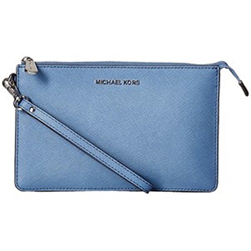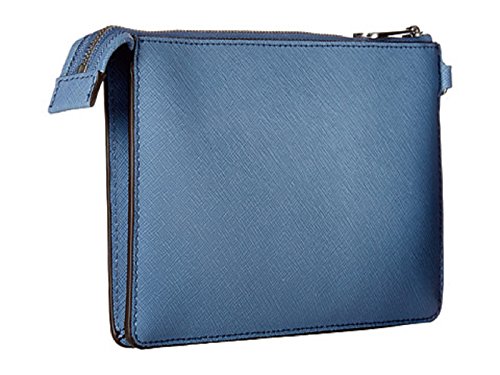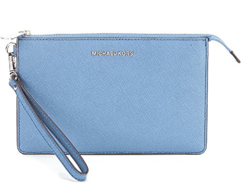 -. Feature : Made of saffiano leather. Zip closure. Removable wristlet strap. Gusseted sides make room for your bulkier items. Interior features one slip pocket.