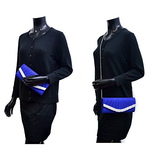 -. Title : Woman Rhinestone Evening Bag Clutch Purse Crystal Pleated Satin Party Handbag