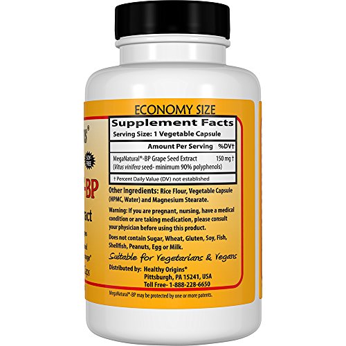 Healthy Origins Mega Natural BP-Grape Seed Extract, 150 Mg, 150 Count