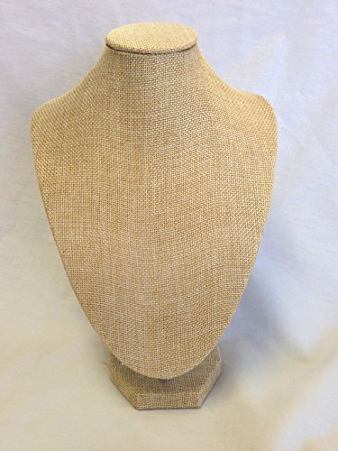 -. Title : Burlap Necklace Bust Jewelry Display Stand 10" High