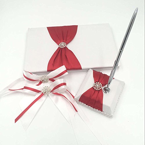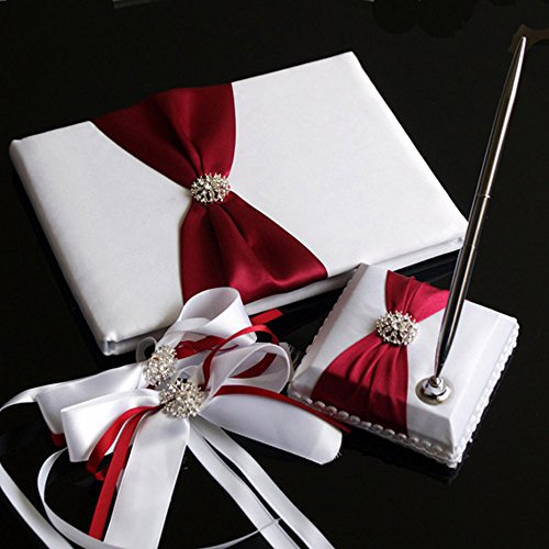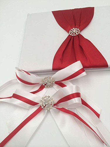 KateMelon Wedding Accessories Pure Elegance Guest Book and Pen Set with 2 Decorative Satin Bows
