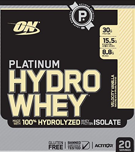 ReleaseDate : 2013-01-01 Studio : Optimum Nutrition Publisher : Optimum Nutrition Binding : Health and Beauty Product Description Platinum Hydrowhey is the most advanced whey protein we've ever developed. In a word: Excellence. By hydrolyzing whey protein isolates to break larger proteins down into smaller pieces, these ultra-pure whey isolates are able to get into your system rapidly, enabling your muscles to start recovering from heavy training. We've dialed up this ultra pure and rapidly-digesting formula with added micronized Branched Chain Amino Acids (BCAAs). 0