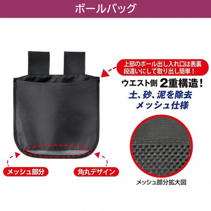 | 素材・材質 | ボールバッグ:オックスフォード織りナイロン生地 球審用ブラシ:プラスチック、プロピレン インジケーター:プラスチック クリーナーブラシ:プロピレン 収納ポーチ:ポリエステル |