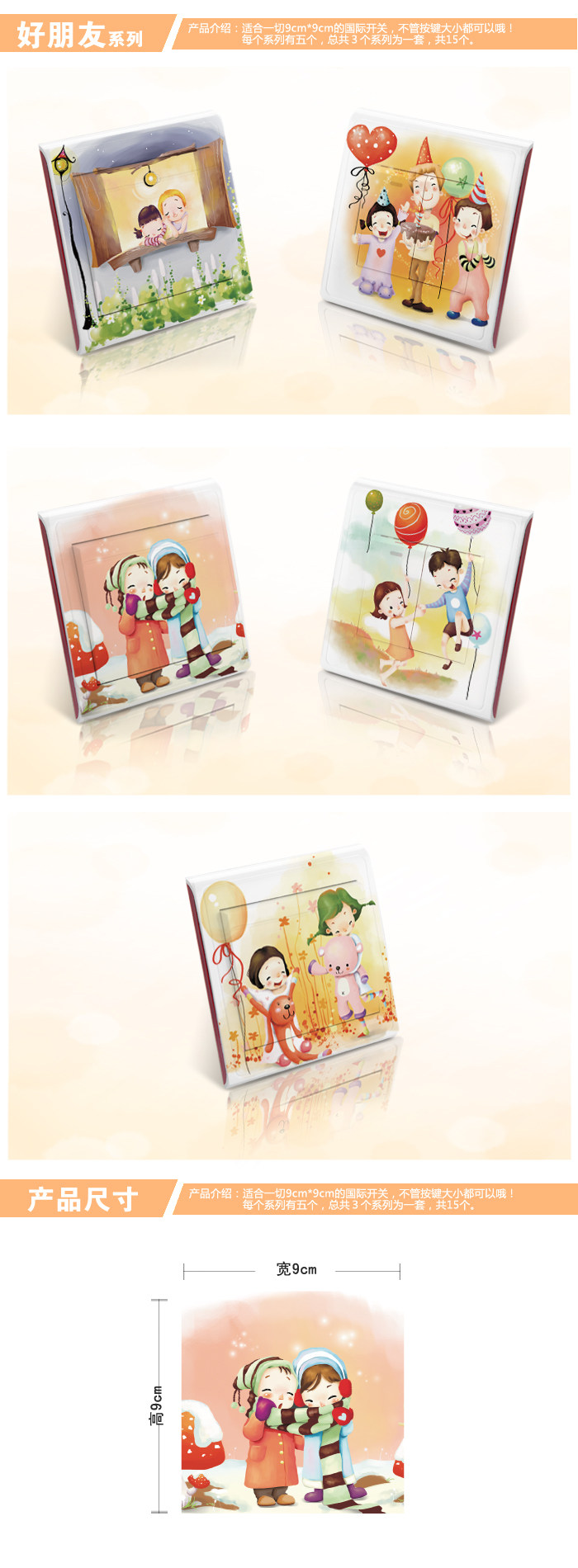 好朋友 DIY温馨浪漫卡通彩色开关贴插座贴 创意家居家饰墙壁贴纸