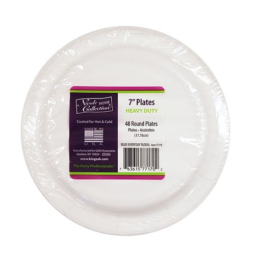 Studio : King Zak Industries, Inc. Publisher : King Zak Industries, Inc. Binding : Kitchen Product Description Nicole Home Collection Everyday Floral 7" Paper Plate, Blue Floral, 48 Count. Our everyday Floral and Brushstrokes paper ware offers the consumer a beautiful presentation with great quality in a value count. Designed for all occasions, banquets, parties, upscale catering, and home. Disposable. 0