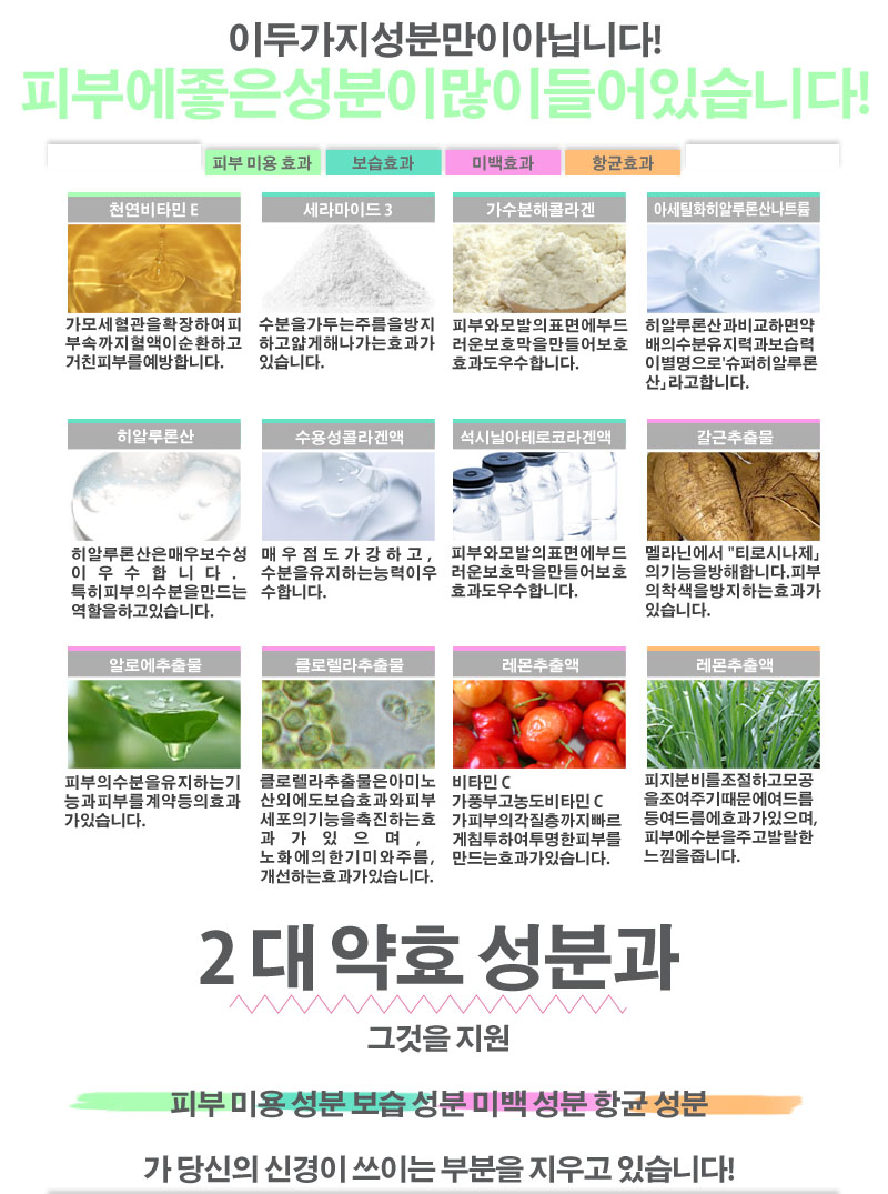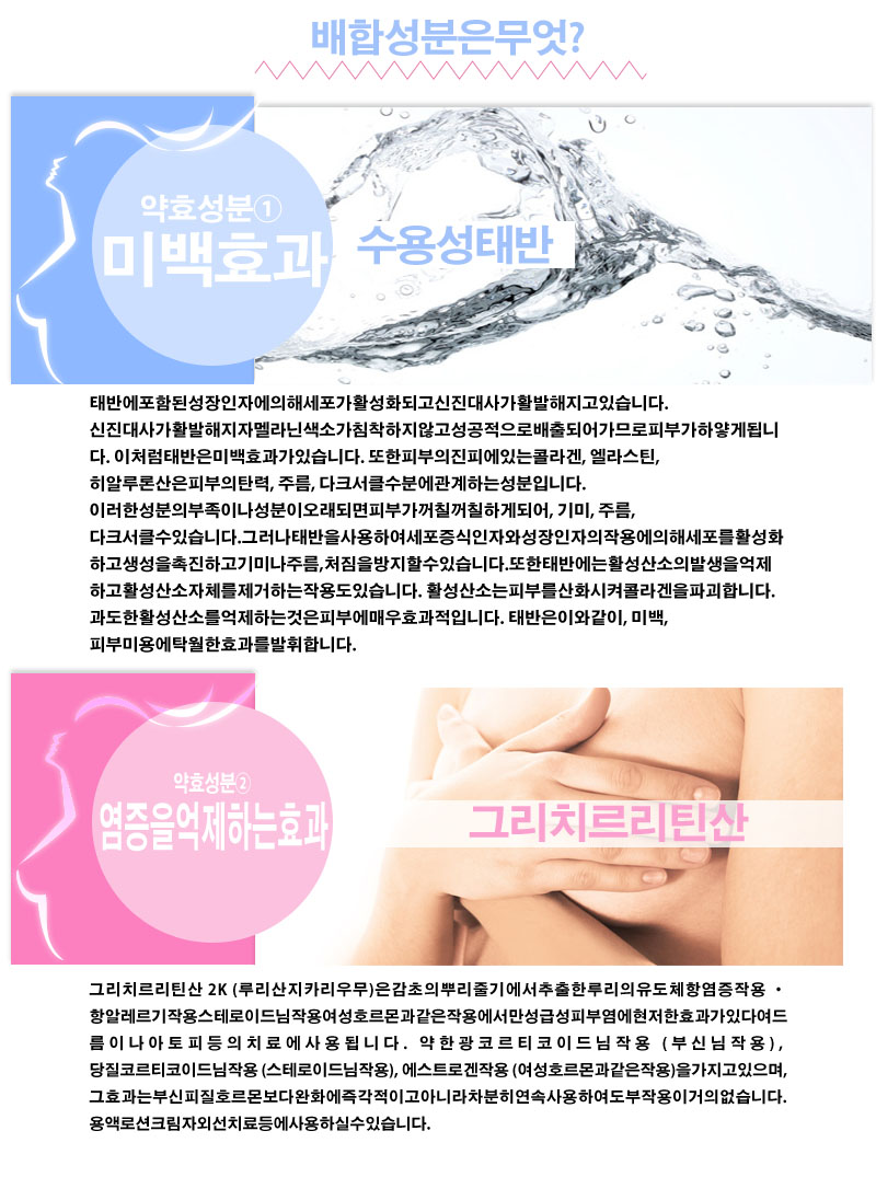 [유효 성분] 수용성 태반, 그리 치르 리 틴산 2K [기타 재료] 트리 (카 프릴 · 카 프린 산) 글리세 릴, 글리세린, BG, 베헤니루아루코루, Dimethicone, 세 테아 릴 알코올, 스테 알린 산 POE (20) 소르 비탄, SE 스테아르 구리 세리 루, 카루보키시비니 루뽀리마 천연 비타민 E, 산탄 검, 물添大콩 인지질, 라우로 이루 글루타민산 디 (피트 스테 릴 · 옥틸 도데 실), 스테아 루피 트 로스 휜 고신, 스 핑고 당지질, 가수 분해 코 라겐 말 아세틸 화 히어 루론 산 나트륨 무 , 히알 론산 Na-2, 가수 분해 히알루 론산, 아세로 라에키스, 레몬 추출물, 수용성 콜라겐 액 -4, 사쿠시니루아테로 코라게 바겐 액체, 갈근 추출물, 알로에 추출물 -2, 클로렐라 추출물, 수산화 K, 페녹시 에탄올, 메 찌루빠라벤, 정제수, 향료