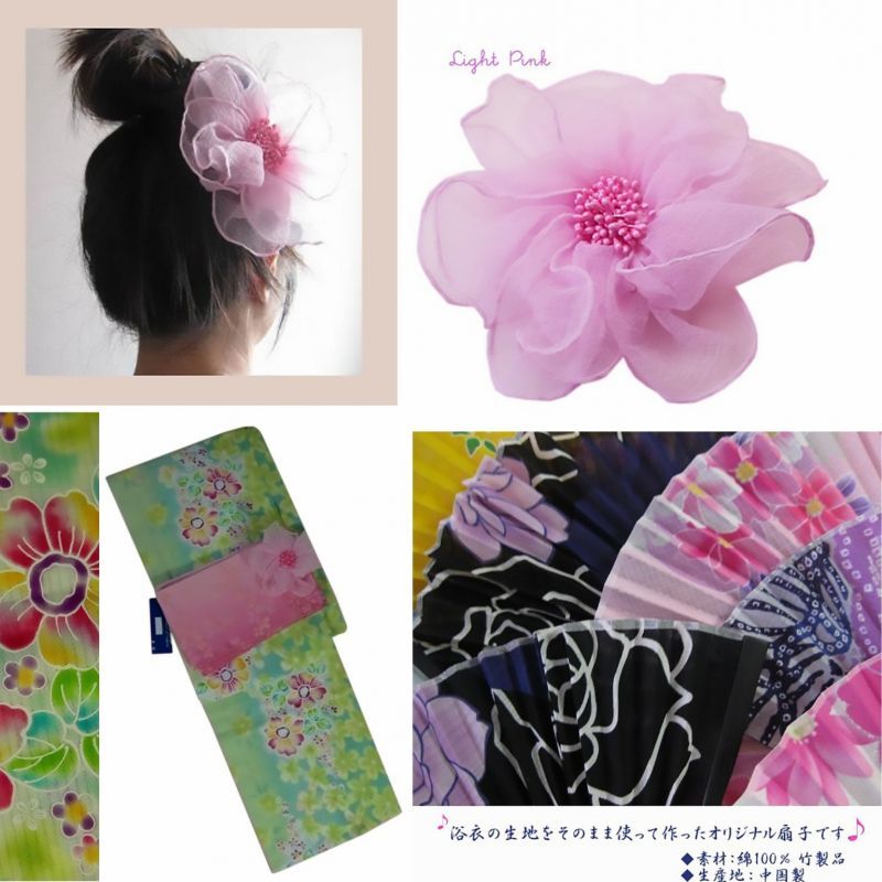 ◆お仕立て上がり浴衣◆帯◆コサージュ(髪飾り/帯飾り)◆浴衣生地の扇子