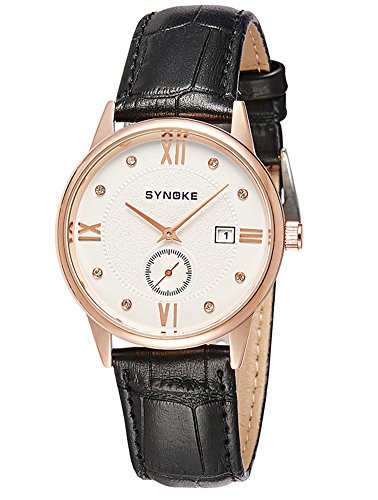 -. Title : Cheamlion Mens Teens Boys Black Jeweled Quartz Leather Watch with Date Display