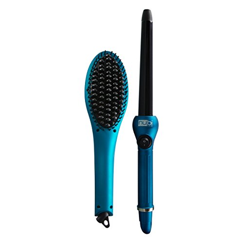 Nubi Hair Simply Sleek Hair Straightening Brush and Tourmaline Curling Iron Set | Salon Quality Tools for Shiny, Easily Manageable Hair (Teal)
