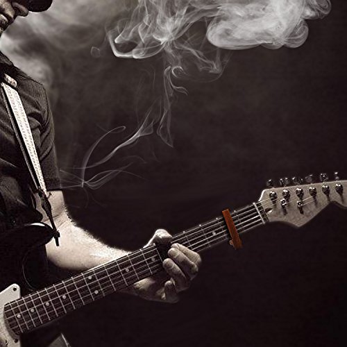 Application example: 1. Pick up your guitar, be it acoustic or electric. 2. Play a open C chord on the guitar. 3. Then, place the capo between the 1st and 2nd frets. You'll need to be closer to the 2nd fret, but not ON the fret. 4. Clamp down the capo tight enough to make sure none of the strings are buzzing. 5a. Play the C chord again. It has now moved up a half-tone to C#. 5b. Move up the capo to the third fret. You are now playing in the key of D. Note how much brighter the same chord sounds in this position. 6. Move the capo up and down the fingerboard to experiment. Find out the best key for your own vocal range. Note: As long as you know your fretboard, you'll know what key you are playing in.